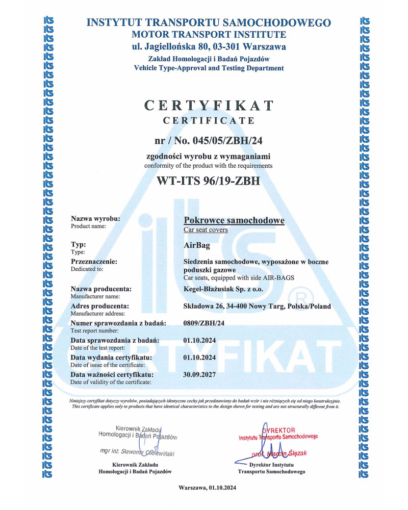 - Przystosowane do foteli wyposażonych w boczne poduszki powietrzne AirBag.