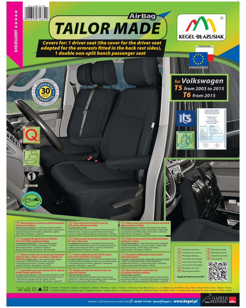 Pokrowce posiadają specjalne, bezpieczne szwy dla poduszek AirBag, dzięki czemu przystosowane są do samochodów zarówno z bocznymi poduszkami powietrznymi w fotelach, jak i do standardowych siedzeń. Profesjonalne wykonanie oraz bezpieczeństwo użytkowania gwarantują certyfikat oraz badania przeprowadzone przez Instytut Transportu Samochodowego.