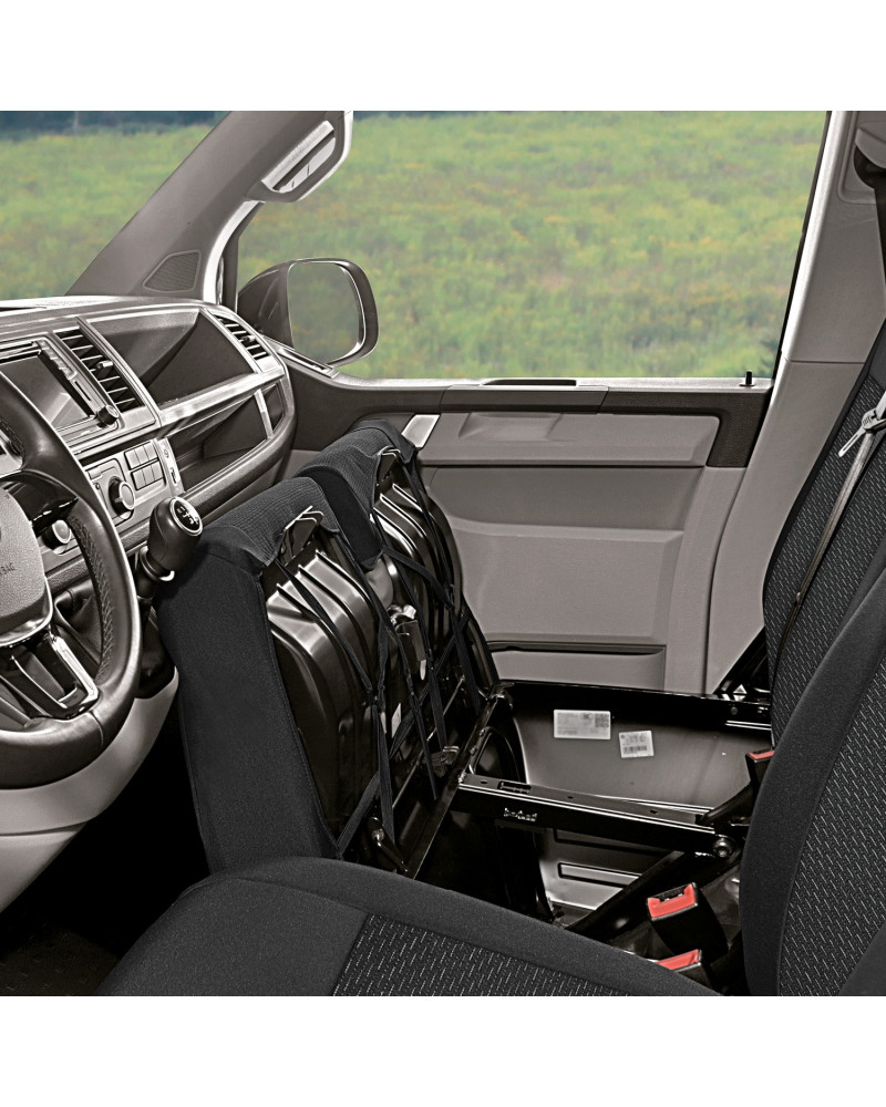 - Wyposażone w specjalne zapinane na rzepę rozcięcie, umożliwiające wyciągnięcie podłokietnika w pokrowcu na fotel dla kierowcy