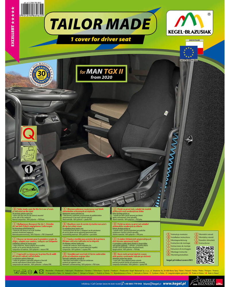 1 pokrowiec na fotel kierowcy lub pasażera (pokrowiec przystosowany do podłokietników zamontowanych w bocznych częściach oparcia)
