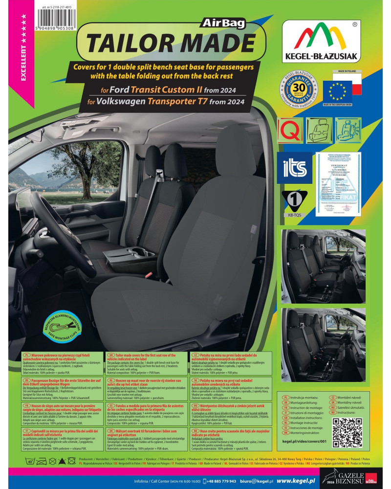 Pokrowce posiadają specjalne, bezpieczne szwy dla poduszek AirBag, dzięki czemu przystosowane są do samochodów zarówno z bocznymi poduszkami powietrznymi w fotelach, jak i do standardowych siedzeń. Profesjonalne wykonanie oraz bezpieczeństwo użytkowania gwarantują certyfikat oraz badania przeprowadzone przez Instytut Transportu Samochodowego.