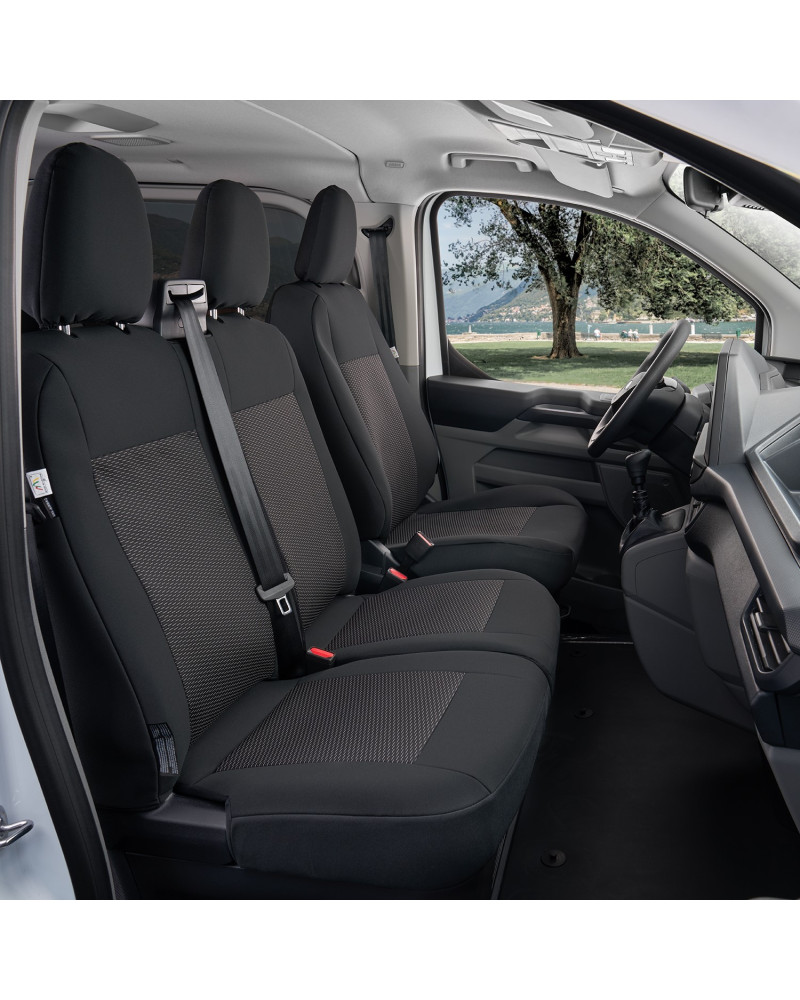 Pokrowce miarowe TAILOR MADE zostały wykonane z wysokogatunkowego materiału tapicerskiego (zarówno z przodu jak i z tyłu), co w połączeniu ze starannością wykończenia nawet najdrobniejszych detali, zadowoli najbardziej wymagających klientów. Dzięki odpowiedniej, przestrzennej budowie oraz konkretnemu dopasowaniu ich do Państwa samochodu, pokrowce świetnie dopasowują się do foteli. Materiał idealnie przylega do foteli, zastępując ich właściwą tapicerkę. Podlaminowanie po wewnętrznej stronie całego materiału trudnopalną pianką PUR, zapobiega ich przesuwaniu.