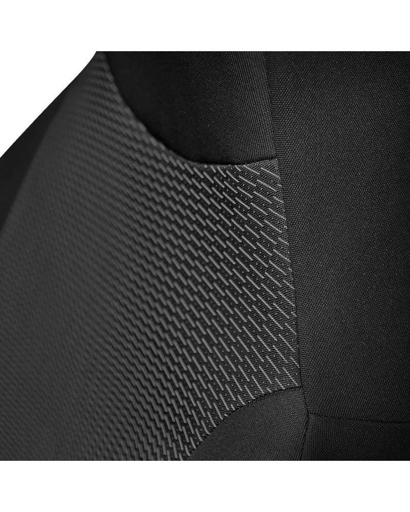 Pokrowce miarowe TAILOR MADE zostały wykonane z wysokogatunkowego materiału tapicerskiego (zarówno z przodu jak i z tyłu), co w połączeniu ze starannością wykończenia nawet najdrobniejszych detali, zadowoli najbardziej wymagających klientów. Dzięki odpowiedniej, przestrzennej budowie oraz konkretnemu dopasowaniu ich do Państwa samochodu, pokrowce świetnie dopasowują się do foteli. Materiał idealnie przylega do foteli, zastępując ich właściwą tapicerkę. Podlaminowanie po wewnętrznej stronie całego materiału trudnopalną pianką PUR, zapobiega ich przesuwaniu.