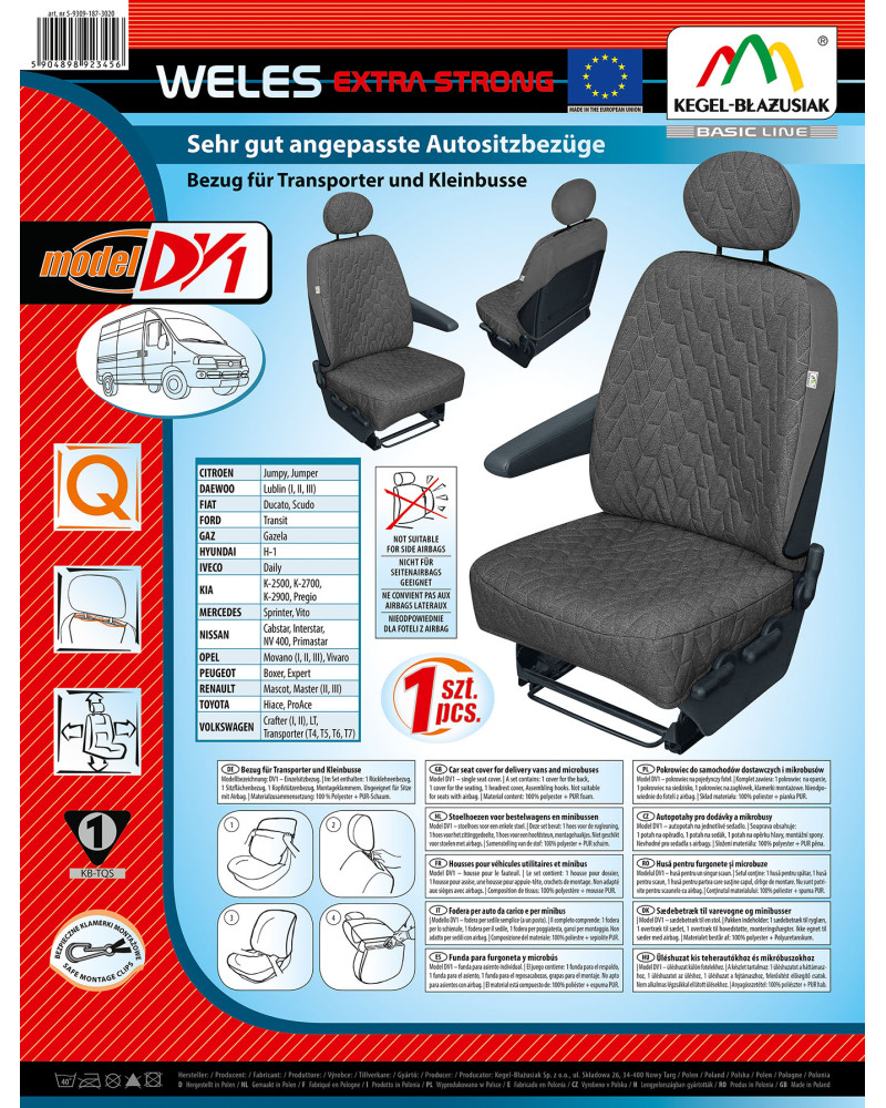 Pokrowiec ORLANDO jest bardzo uniwersalny i pasuje prawie na każdą podwójną kanapę samochodu dostawczego – dla pewności dopasowania przy sprzedaży wysyłkowej przesyłamy w załączeniu rysunek z wymiarami podwójnych kanap na które pasuje pokrowiec. Pokrowiec dzięki uniwersalnej kolorystyce pasuje do wnętrza każdego samochodu i jest niezwykle praktyczny w użyciu. Duża powierzchnia materiału, czarny kolor oraz, co najważniejsze, specjalne właściwości materiału, zapewniają praktyczne użytkowanie przez długi czas. Produkt ekologiczny i ekonomiczny- wielokrotnego użytku, bardzo łatwy w czyszczeniu. Bardzo łatwy do założenia i ściągnięcia. Po złożeniu nie zajmuje dużo miejsca, dlatego też zawsze można wozić go ze sobą. Produkt firmy Kegel-Błażusiak która jest wiodącym producentem i eksporterem pokrowców i akcesoriów samochodowych oraz odzieży roboczej. Produkty tej firmy wyróżniają się w Polsce i Europie wysoką jakością zarówno wykonania, jak i użytych surowców oraz dużą funkcjonalnością oraz dbałością o szczegóły. Lata doświadczenia i coraz bardziej doskonały asortyment sprawiają, że pokrowce tejże marki można określić mianem najlepszych w Polsce.