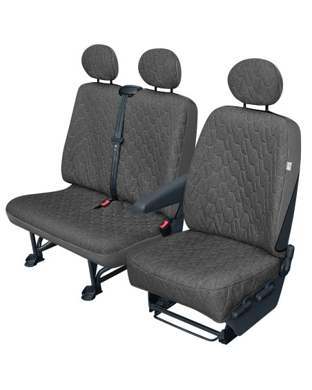 Pokrowiec ochronny ORLANDO do przewozu pasażerów, psa lub bagażu na podwójnej kanapie samochodu dostawczego, skutecznie chroni kanapę przed wszelkiego rodzaju zabrudzeniami i uszkodzeniami. Świetnie sprawdza się przy przewożeniu osób jeżdżących w zabrudzonych ubraniach roboczych, psa czy bagażu. W środkowej części posiada zamek, który daje możliwość odsłonięcia gniazda pasów w każdej chwili. Dzięki czemu możliwe jest przewożenie dwóch pasażerów z zapiętymi pasami bezpieczeństwa lub jednego pasażera i psa, który równiez może być przypięty do gniazda pasów za pomocą smyczy samochodowej. Dzięki pokrowcom ORLANDO, możesz być spokojny o tapicerkę swojego samochodu. Pokrowiec jest bardzo użyteczny w wielu sytuacjach a jago funkcjonalność spełnia najwyższe oczekiwania- wszystkie jego funkcje łączy wspólny mianownik - NIEZAWODNA OCHRONA.