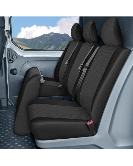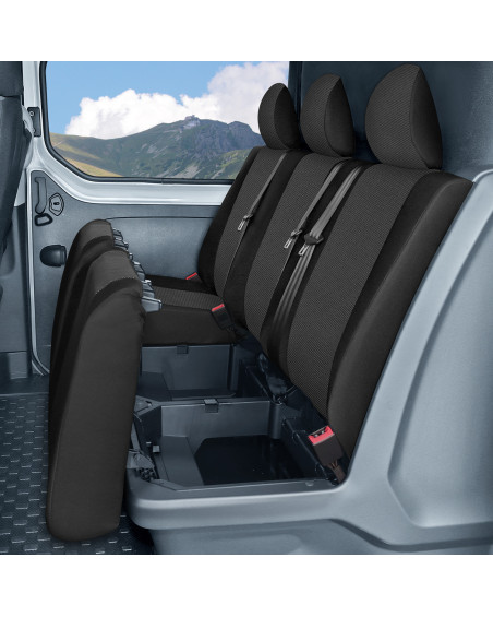 1 pokrowiec na potrójną kanapę pasażerów z dzielonym oparciem (pokrowiec przystosowany do podłokietników zamontowanych w bocznych częściach oparcia)