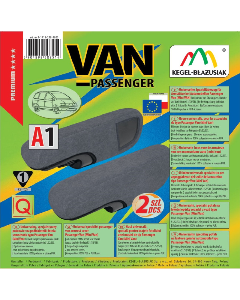 Innowacyjne w swoim rozwiązaniu pokrowce dopasowane Van Passenger ELEGANCE na fotele samochodów typu mini van osobowy- sprzedawane z rozdzieleniem na poszczególne elementy- profesjonalnie wykonane z wysokiej jakości grubego, mocnego materiału welurowego, zachwycą nawet najbardziej wymagających klientów. Bardzo dobrze dopasowane pokrowce oddają wszystkie detale foteli nie ograniczając ich funkcjonalności- umożliwiają używanie wszystkich półek, kieszeni, schowków. Pokrowce po wewnętrznej stronie całego materiału podlaminowane są trudnopalną pianką PUR, która zapobiega ich przesuwaniu. Bardzo dobrze pasują do foteli konkretnych modeli samochodów – rozdzielenie pokrowca na części wraz z kilkoma wariantami rozmiarowymi zapewnia lepsze dopasowanie. Profesjonalne wykonanie z materiałów wysokiej jakości gwarantuje długi czas użytkowania.