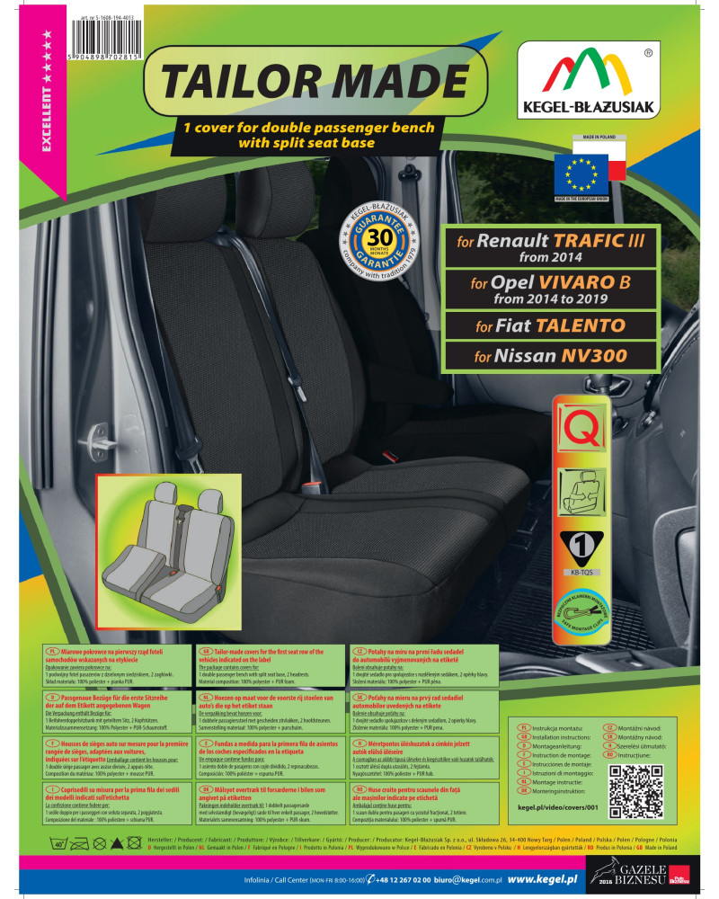 1 pokrowiec na podwójny fotel pasażerów z dzielonym siedziskiem