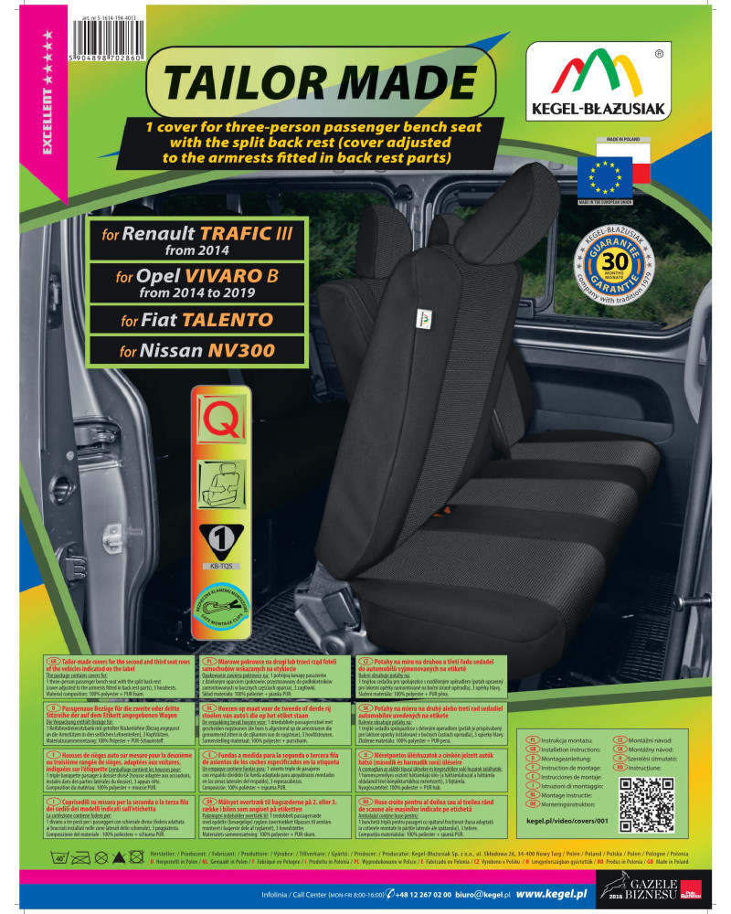 Pokrowiec na trzyosobową kanapę TAILOR MADE split dzielony Fiat Talento