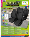 Oferta skierowana do właścicieli tego konkretnego modelu samochodu, którzy chcą zadbać o wnętrza swoich pojazdów oraz dodać im szyku i elegancji. Pokrowce samochodowe TAILOR MADE bardzo dobrze chronią oryginalną tapicerkę samochodu przed przecieraniem i zniszczeniem, a gustowna, klasyczna stylistyka wywołuje pozytywne wrażenia estetyczne. Stonowana kolorystyka- czerń wraz z delikatną szarą fakturą w środku pokrowca idealnie wkomponuje się do wnętrza każdego samochodu. Zaletą pokrowców TAILOR MADE jest to, że zakrywają całą tylną powierzchnię oparcia. Ta właściwość sprawia, że bardzo dobrze prezentują się także z tyłu fotela, jednocześnie chroniąc go przed zabrudzeniami i uszkodzeniami (ważne jest to szczególnie dla osób posiadających małe dzieci).