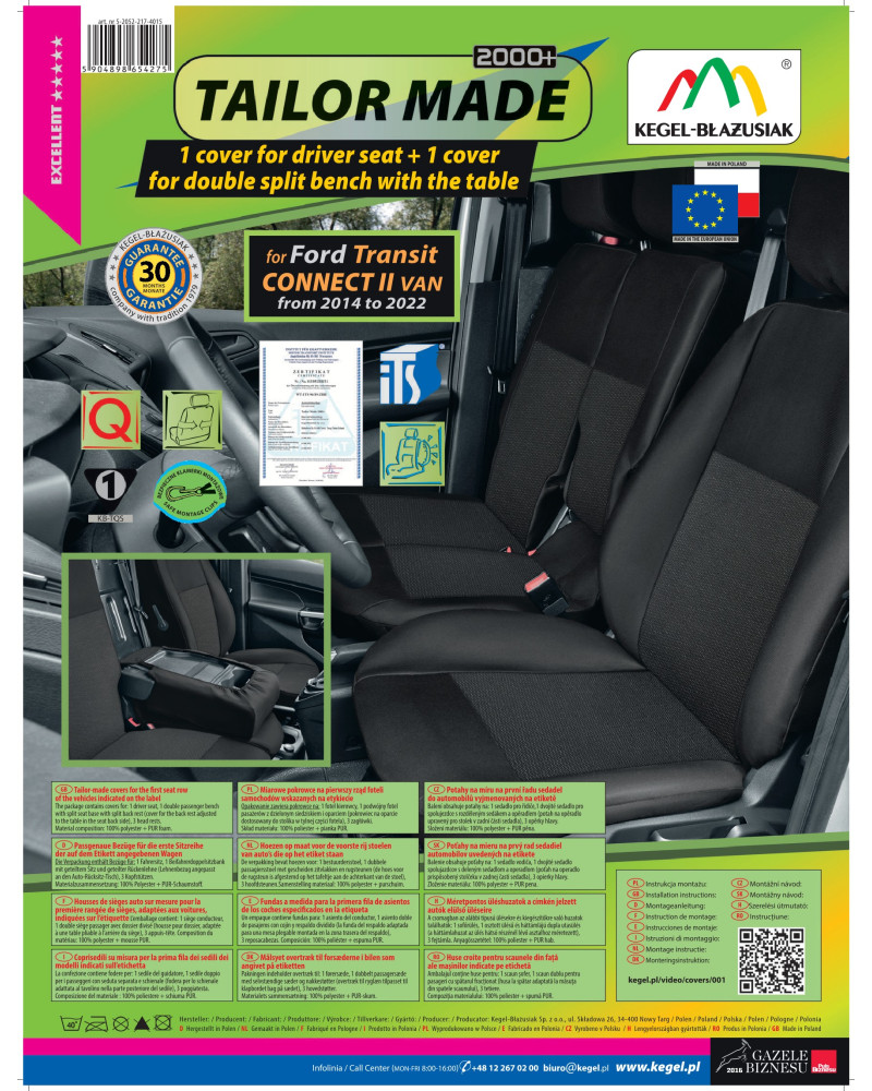 Pokrowiec TAILOR MADE - z pojedynczym fotelem kierowcy i podwójnym fotelem pasażerów Ford Transit Connect II (2014-2022)