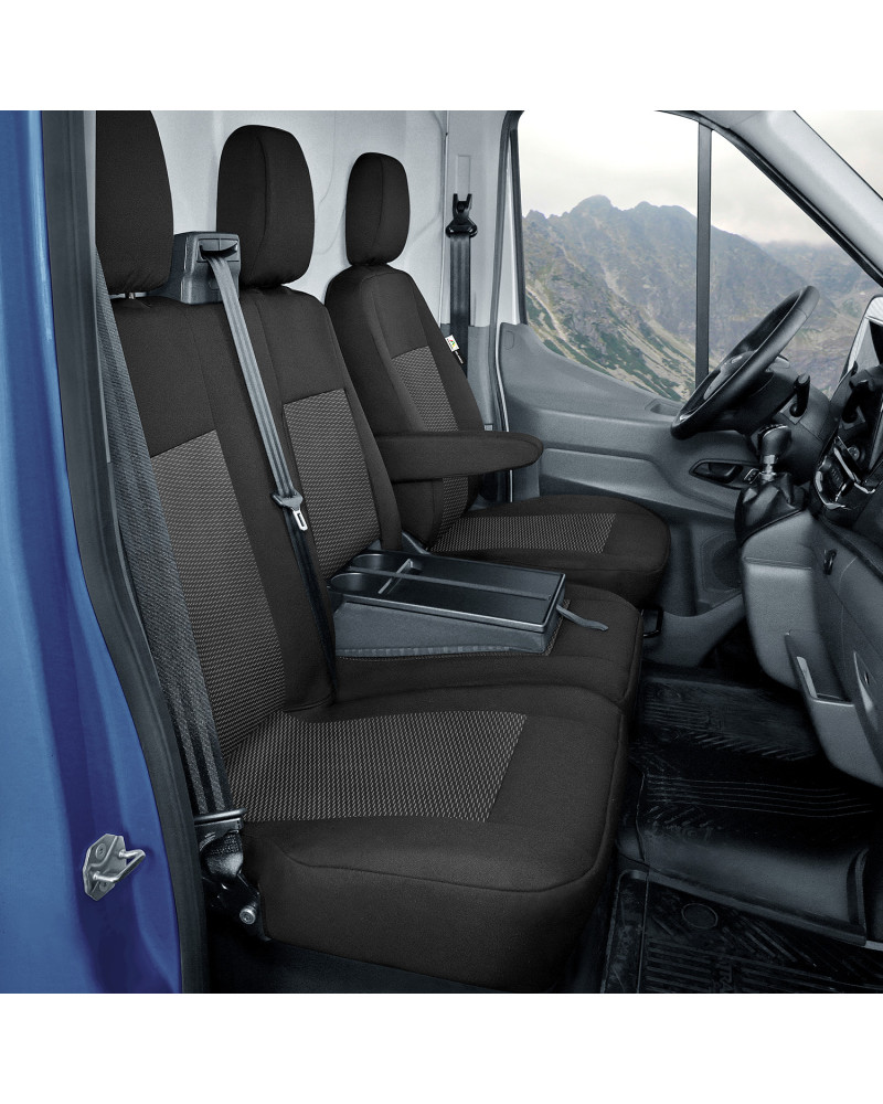 1 pokrowiec na podwójny fotel pasażerów z dzielonym siedziskiem i z rozkładanym z oparcia stolikiem