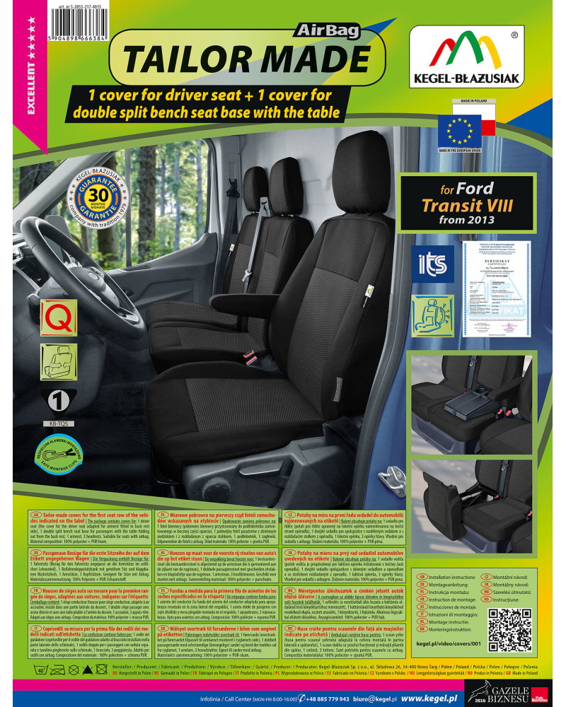 Pokrowce posiadają specjalne, bezpieczne szwy dla poduszek AirBag, dzięki czemu przystosowane są do samochodów zarówno z bocznymi poduszkami powietrznymi w fotelach, jak i do standardowych siedzeń. Profesjonalne wykonanie oraz bezpieczeństwo użytkowania gwarantują certyfikat oraz badania przeprowadzone przez Instytut Transportu Samochodowego.