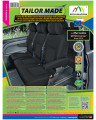 Oferta skierowana do właścicieli tego konkretnego modelu samochodu, którzy chcą zadbać o wnętrza swoich pojazdów oraz dodać im szyku i elegancji. Pokrowce samochodowe TAILOR MADE bardzo dobrze chronią oryginalną tapicerkę samochodu przed przecieraniem i zniszczeniem, a gustowna, klasyczna stylistyka wywołuje pozytywne wrażenia estetyczne. Stonowana kolorystyka- czerń wraz z delikatną szarą fakturą w środku pokrowca idealnie wkomponuje się do wnętrza każdego samochodu. Zaletą pokrowców TAILOR MADE jest to, że zakrywają całą tylną powierzchnię oparcia. Ta właściwość sprawia, że bardzo dobrze prezentują się także z tyłu fotela, jednocześnie chroniąc go przed zabrudzeniami i uszkodzeniami (ważne jest to szczególnie dla osób posiadających małe dzieci).