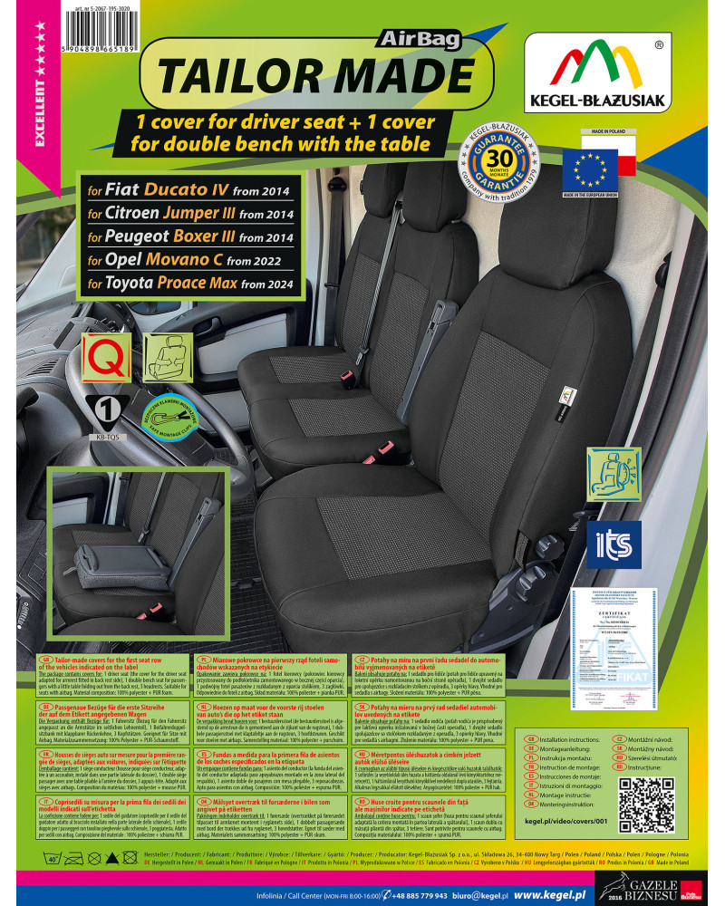Pokrowiec na fotel kierowcy i podwójne siedzenie pasażerów TAILOR MADE 1+2 Fiat Ducato IV (2014–)