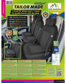 Oferta skierowana do właścicieli tego konkretnego modelu samochodu, którzy chcą zadbać o wnętrza swoich pojazdów oraz dodać im szyku i elegancji. Pokrowce samochodowe TAILOR MADE bardzo dobrze chronią oryginalną tapicerkę samochodu przed przecieraniem i zniszczeniem, a gustowna, klasyczna stylistyka wywołuje pozytywne wrażenia estetyczne. Stonowana kolorystyka- czerń wraz z delikatną szarą fakturą w środku pokrowca idealnie wkomponuje się do wnętrza każdego samochodu. Zaletą pokrowców TAILOR MADE jest to, że zakrywają całą tylną powierzchnię oparcia. Ta właściwość sprawia, że bardzo dobrze prezentują się także z tyłu fotela, jednocześnie chroniąc go przed zabrudzeniami i uszkodzeniami (ważne jest to szczególnie dla osób posiadających małe dzieci).