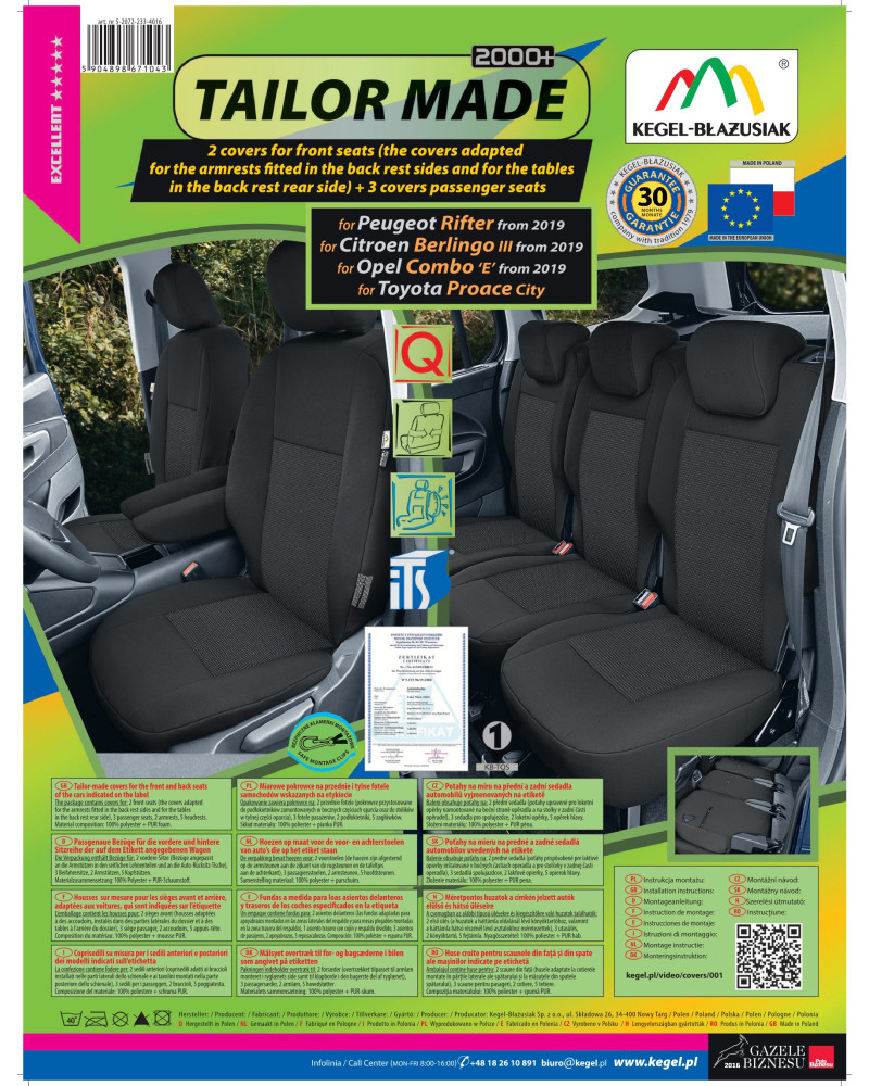 Pokrowce miarowe TAILOR MADE zostały wykonane z wysokogatunkowego materiału tapicerskiego (zarówno z przodu jak i z tyłu), co w połączeniu ze starannością wykończenia nawet najdrobniejszych detali, zadowoli najbardziej wymagających klientów. Dzięki odpowiedniej, przestrzennej budowie oraz konkretnemu dopasowaniu ich do Państwa samochodu, pokrowce świetnie dopasowują się do foteli. Materiał idealnie przylega do foteli, zastępując ich właściwą tapicerkę. Podlaminowanie po wewnętrznej stronie całego materiału trudnopalną pianką PUR, zapobiega ich przesuwaniu.