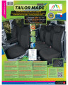 Oferta skierowana do właścicieli tego konkretnego modelu samochodu, którzy chcą zadbać o wnętrza swoich pojazdów oraz dodać im szyku i elegancji. Pokrowce samochodowe TAILOR MADE bardzo dobrze chronią oryginalną tapicerkę samochodu przed przecieraniem i zniszczeniem, a gustowna, klasyczna stylistyka wywołuje pozytywne wrażenia estetyczne. Stonowana kolorystyka- czerń wraz z delikatną szarą fakturą w środku pokrowca idealnie wkomponuje się do wnętrza każdego samochodu. Zaletą pokrowców TAILOR MADE jest to, że zakrywają całą tylną powierzchnię oparcia. Ta właściwość sprawia, że bardzo dobrze prezentują się także z tyłu fotela, jednocześnie chroniąc go przed zabrudzeniami i uszkodzeniami (ważne jest to szczególnie dla osób posiadających małe dzieci).