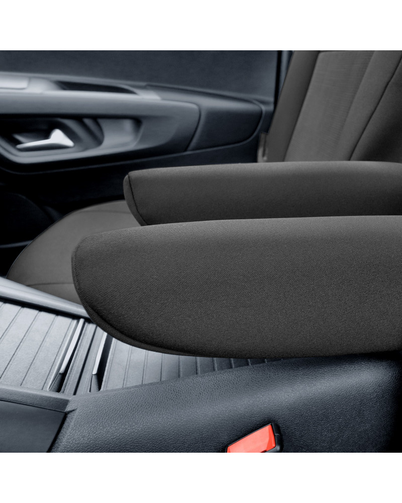 - Wyposażone w specjalne zapinane na rzepę rozcięcie, umożliwiające wyciągnięcie podłokietnika w pokrowcu na fotel dla kierowcy