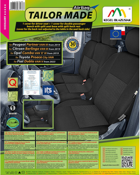 1 pokrowiec na podwójny fotel pasażerów z dzielonym siedziskiem i oparciem (pokrowiec na oparcie dostosowany do stolika w tylnej części fotela)