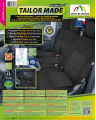 Oferta skierowana do właścicieli tego konkretnego modelu samochodu, którzy chcą zadbać o wnętrza swoich pojazdów oraz dodać im szyku i elegancji. Pokrowce samochodowe TAILOR MADE bardzo dobrze chronią oryginalną tapicerkę samochodu przed przecieraniem i zniszczeniem, a gustowna, klasyczna stylistyka wywołuje pozytywne wrażenia estetyczne. Stonowana kolorystyka- czerń wraz z delikatną szarą fakturą w środku pokrowca idealnie wkomponuje się do wnętrza każdego samochodu. Zaletą pokrowców TAILOR MADE jest to, że zakrywają całą tylną powierzchnię oparcia. Ta właściwość sprawia, że bardzo dobrze prezentują się także z tyłu fotela, jednocześnie chroniąc go przed zabrudzeniami i uszkodzeniami (ważne jest to szczególnie dla osób posiadających małe dzieci).