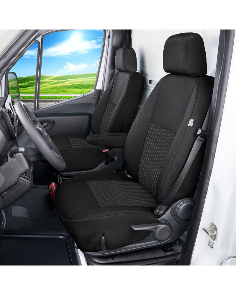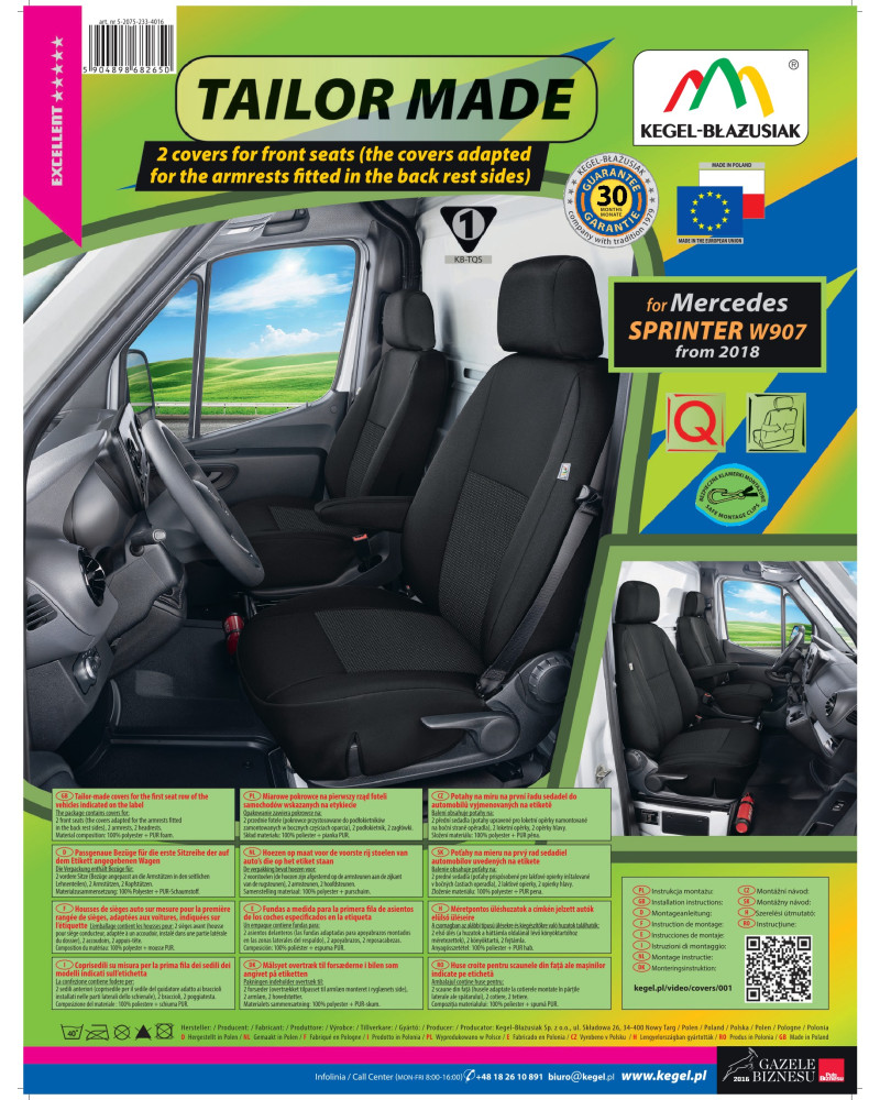2 pokrowce na przednie fotele (pokrowce przystosowane do podłokietników zamontowanych w bocznych częściach oparcia)
