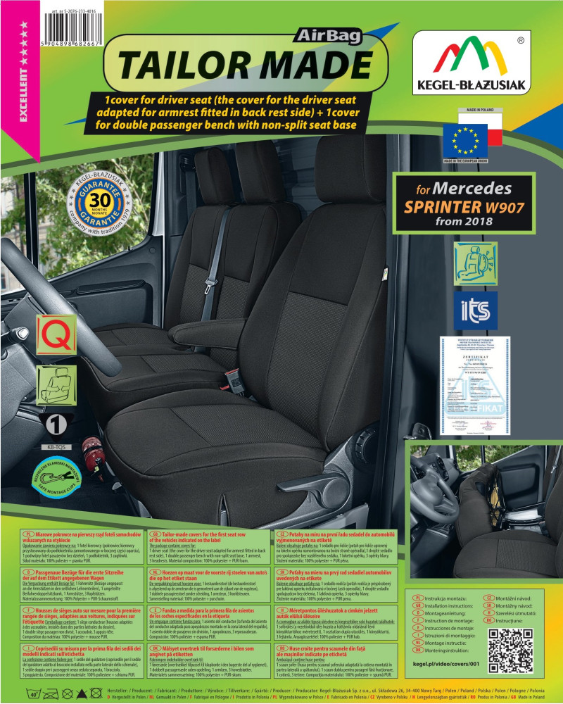 Pokrowce miarowe Tailor Made na przednie fotele 1+1 Mercedes Sprinter III W907 (2018–)