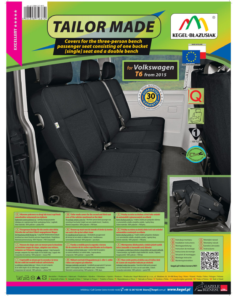 1 pokrowiec na potrójną kanapę pasażerów składającą się z pojedynczego fotela i podwójnego fotela