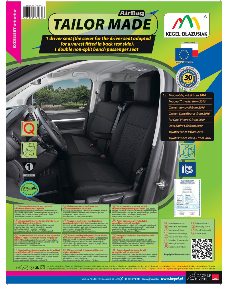Pokrowiec na fotel kierowcy i podwójne siedzenie pasażerów TAILOR MADE 1+2 table