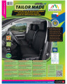 Oferta skierowana do właścicieli tego konkretnego modelu samochodu, którzy chcą zadbać o wnętrza swoich pojazdów oraz dodać im szyku i elegancji. Pokrowce samochodowe TAILOR MADE bardzo dobrze chronią oryginalną tapicerkę samochodu przed przecieraniem i zniszczeniem, a gustowna, klasyczna stylistyka wywołuje pozytywne wrażenia estetyczne. Stonowana kolorystyka- czerń wraz z delikatną szarą fakturą w środku pokrowca idealnie wkomponuje się do wnętrza każdego samochodu. Zaletą pokrowców TAILOR MADE jest to, że zakrywają całą tylną powierzchnię oparcia. Ta właściwość sprawia, że bardzo dobrze prezentują się także z tyłu fotela, jednocześnie chroniąc go przed zabrudzeniami i uszkodzeniami (ważne jest to szczególnie dla osób posiadających małe dzieci).