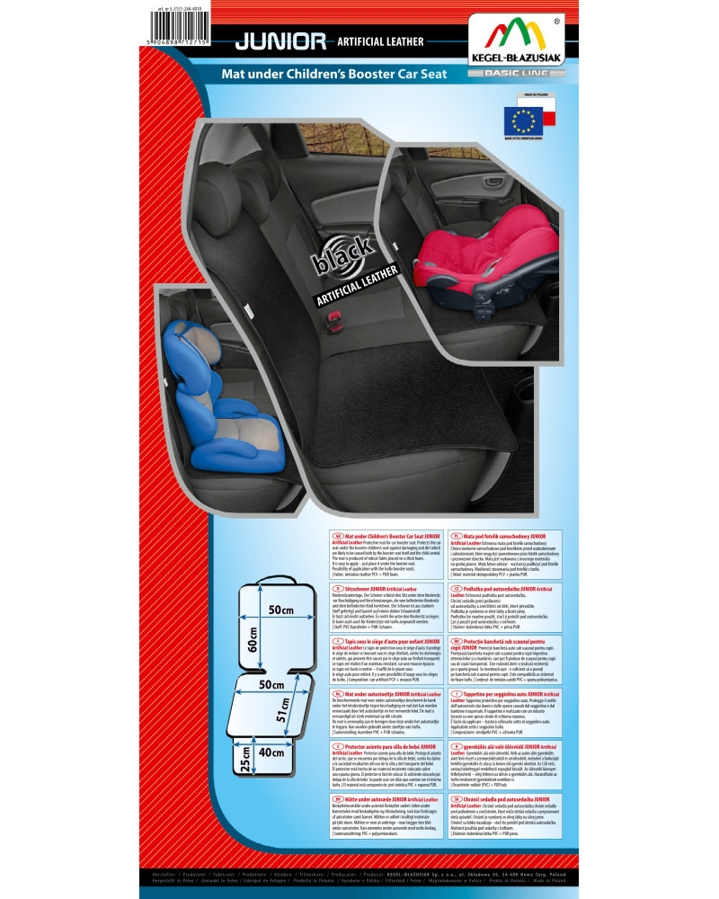 Ochronna mata pod fotelik samochodowy do przewozu dzieci JUNIOR Artificial Leather black