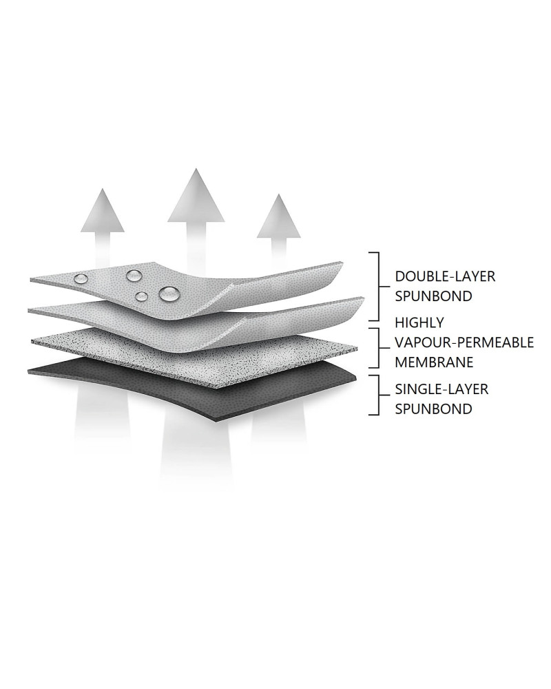 - Wodoodporny i paroprzepuszczalny materiał, odprowadzający parę wodną spod pokrowca
