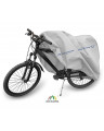 Pokrowiec jest nieprzemakalny, dzięki czemu rower pod pokrowcem jest zabezpieczony przed deszczem lub śniegiem, a gromadząca się pod pokrowcem wilgoć jest odprowadzona na zewnątrz. Materiał odporny jest też na promienie słoneczne UV oraz niszczące działanie innych czynników atmosferycznych. Materiał zachowuje szczelność, przy jednoczesnym zapewnieniu odpowiedniego przepływu powietrza co w konsekwencji przeciwdziała powstawaniu korozji, chroni przed blaknięciem i matowieniem lakieru oraz elementów chromowanych. Pokrowce ochronią cały rower wraz z jego dolną częścią przed szkodliwym wpływem środowiska. Pokrowiec mocuje się za pomocą elastycznego ściągacza, dzięki czemu jest łatwy do zakładania i ściągani