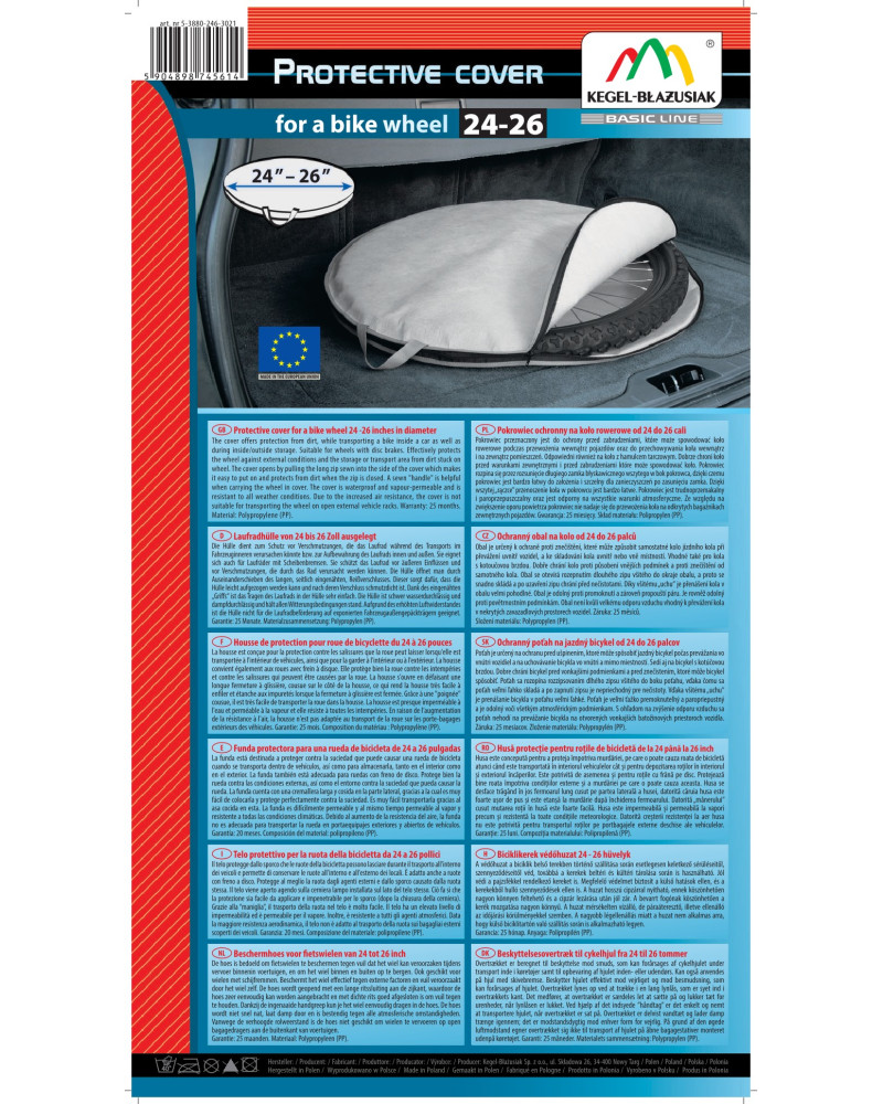 Pokrowiec przeznaczony jest do ochrony przed zabrudzeniami, które może spowodować koło rowerowe podczas przewożenia wewnątrz pojazdów oraz do przechowywania koła wewnątrz i na zewnątrz pomieszczeń. Odpowiedni również na koło z hamulcem tarczowym. Dobrze chroni koło przed warunkami zewnętrznymi i przed zabrudzeniami które może spowodować koło. Pokrowiec rozpina się przez rozsunięcie długiego zamka błyskawicznego wszytego w bok pokrowca, dzięki czemu pokrowiec jest bardzo łatwy do założenia i szczelny dla zanieczyszczeń po zasunięciu zamka. Dzięki wszytej „rączce” przenoszenie koła w pokrowcu jest bardzo łatwe. Pokrowiec jest trudnoprzemakalny i paroprzepuszczalny oraz jest odporny na wszystkie warunki atmosferyczne. Ze względu na zwiększenie oporu powietrza pokrowiec nie nadaje się do przewożenia koła na odkrytych bagażnikach zewnętrznych pojazdów.