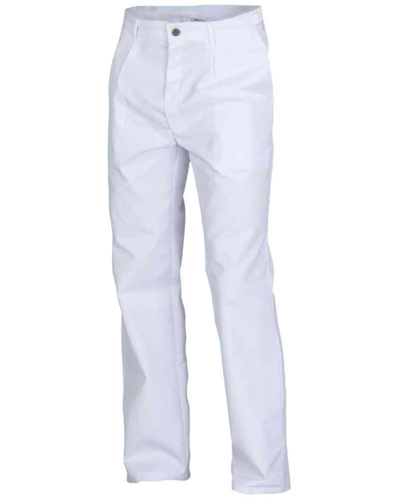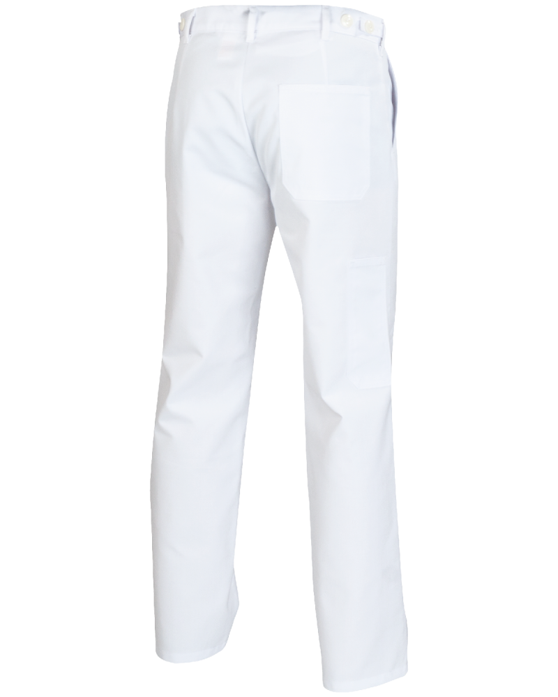 Spodnie zostały uszyte z wysokiej jakości materiałów – tkanina Klopman, gwarantująca odporność na mocne zabrudzenia, wytrzymałość i długotrwałość koloru po wielokrotnym praniu.