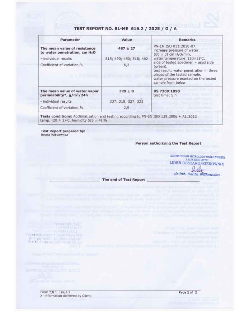 • skład materiału to wielowarstwowa MEMBRANA i włóknina SPUNBOND